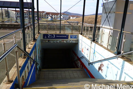 Am Ende des in Richtung Bamberg zeigenden Bahnsteigs gibt es einen zweiten Tunnel, welcher die Altstadt mit der nur ein paar Gehminuten entfernten Obermaintherme verbindet: