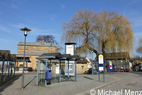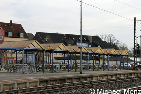 Westlich neben dem Bahnhofsgebäude befinden sich ein Imbissstand, der Anschluss an die Busse des Öffentlichen Nahverkehrs, weiträumige Farradabstellmöglichkeiten und ein Parkplatz: