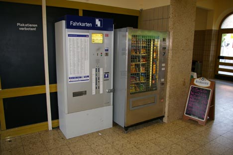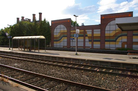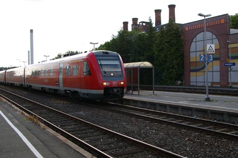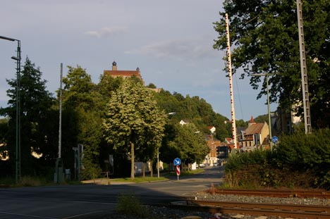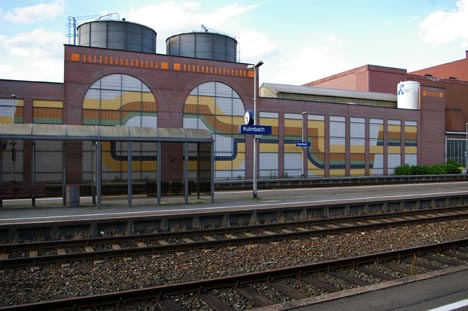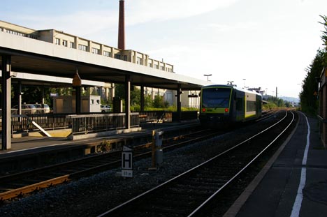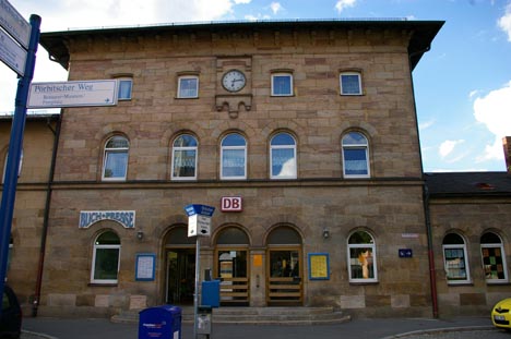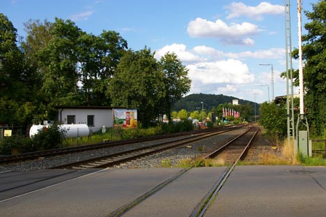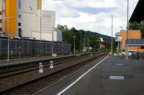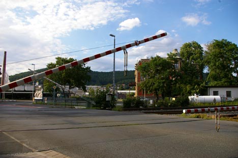 Der Bahnhof selber ist nur ein paar Gehminuten vom Kulmbacher Marktplatz entfernt und grenzt mit seinem beschrankten Bahnübergang das nördlich gelegene Industriegebiet vom Stadtkern ab: