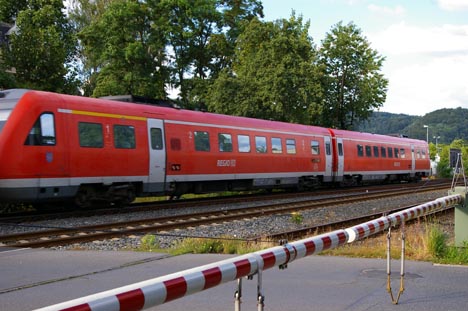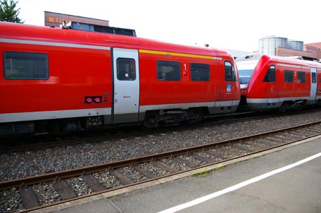 Einfahrt von RE 3073 und Ausfahrt in Richtung Neuenmarkt-Wirsberg (9.7.2011 um 18:26):
