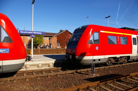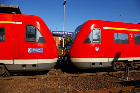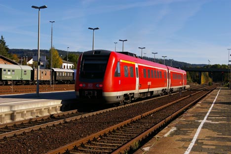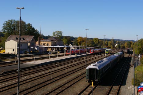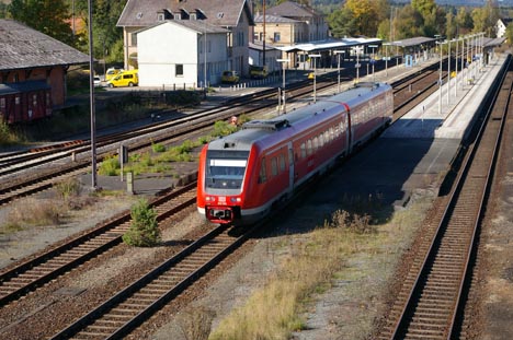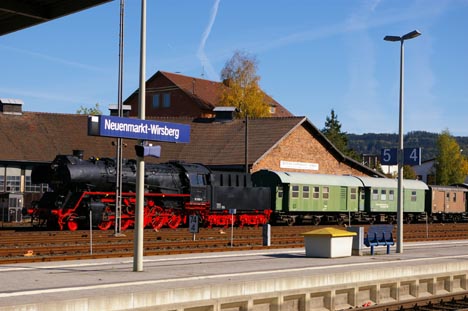 Am 16.10.2011 startete um 12:36 RE 3029 im Hauptbahnhof Würzburg und kam pünktlich um 14:32 auf Gleis 4 in Neuenmarkt-Wirsberg an. Nach der Abkopplung setzte sich zunächst um 14:35 das vordere Zugteil (RE 3009) in Gang und fuhr über Trebgast nach Bayreuth (Ankunft 14:55):