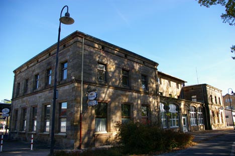 Der Bahnhof war einstmals auch Beginn der Eisenbahnstrecke von Neuenmarkt-Wirsberg nach Bischofsgrün. Die Züge folgten zunächst den Gleisen Richtung Bayreuth bis sie in Schlömen abzweigten. Von da aus ging es über Himmelkron, Lanzendorf, Bad Berneck, Goldmühl und Röhrendorf nach Bischofsgrün. Der Personenverkehr auf dieser Strecke wurde 1974 eingestellt und das letzte Teilstück für den Güterverkehr im Jahre 2006.