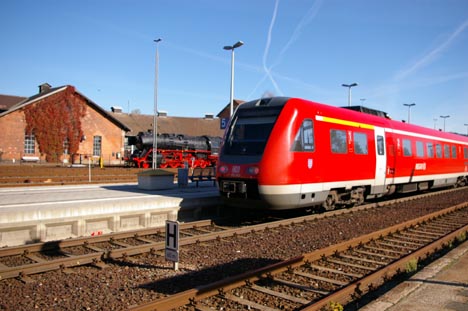 Vom Bahnhof aus führt eine Brücke hinüber ins Deutsche Dampflokmuseum: