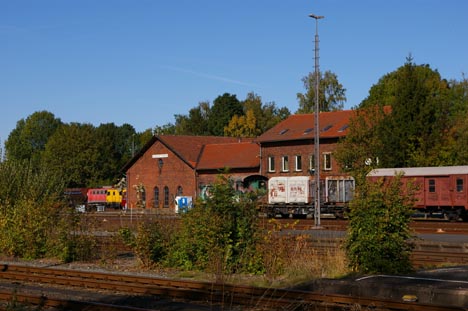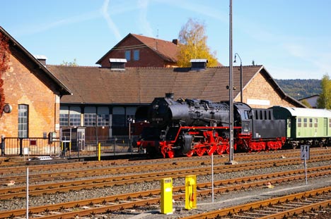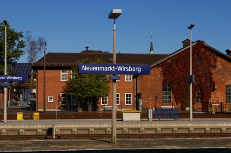 Vom Bahnhof Neuenmarkt-Wirsberg führt eine Brücke ins gegenüberliegende Deutsche Dampflokmuseum. Das DDM beheimatete bis 1975 das Bahnbetriebswerk mit seinem 15ständigen Lokomotivschuppen und der dazugehörigen Segmentdrehscheibe: