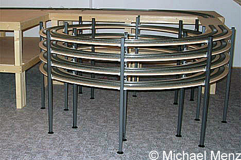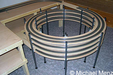 Die beiden so entstandenen Ebenen der Modellbahn wurden dann über einen Gleiswendel miteinander verbunden.